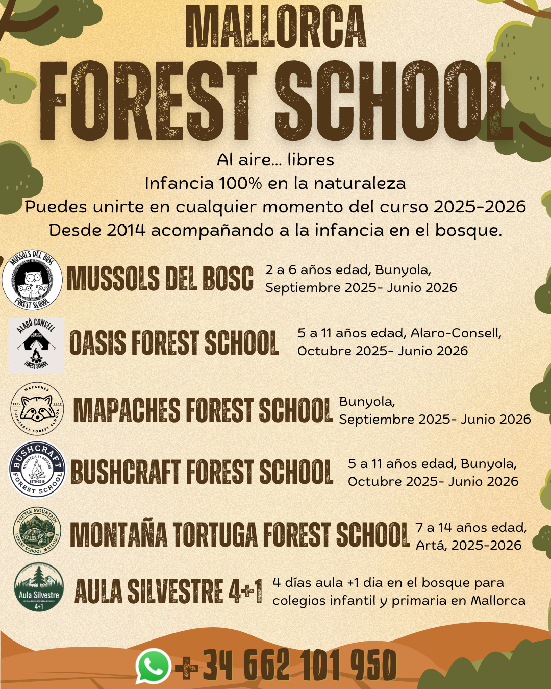+info whatsapp (porque estamos en el bosque con l@s niñ@s, contestamos lo antes posible) +34 662101950